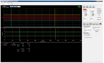 該測試系統(tǒng),配備ARTScope測試軟件,不僅包括對采樣頻率,觸發(fā)信息等參數(shù)的配置功能,同時(shí)還包括信號分析的時(shí)域、頻域波形顯示,信號幅值、有效值、頻率、周期、當(dāng)前系統(tǒng)信噪比等參數(shù)的測量和標(biāo)記功能。配合阿爾泰的數(shù)據(jù)流盤PXIe-SSDM2X存儲(chǔ)模塊,可實(shí)現(xiàn)高達(dá)1GMB/s實(shí)時(shí)數(shù)據(jù)傳輸和存儲(chǔ),存儲(chǔ)的數(shù)據(jù)可離線進(jìn)行數(shù)據(jù)分析,也可再次回放查詢有效信息。